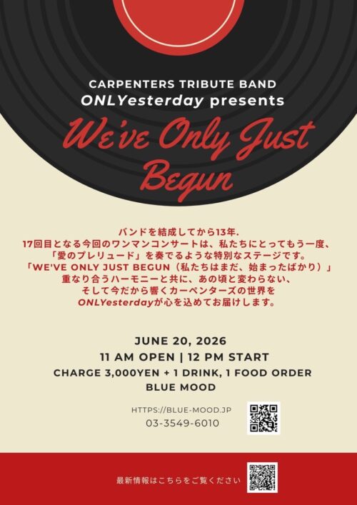 重なり合うハーモニーと共に、あの頃と変わらない、 そして今だから響くカーペンターズの世界を ONLYesterdayが心を込めてお届けします。